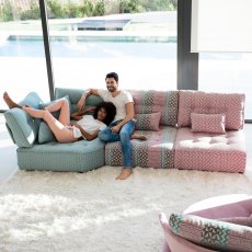 Arianne Love was born as a new concept of modular that brought back the spirit of the 60s. Based on the concept of single modules, low sitting, and great comfort, Arianne Love expands the range of options of Arianne with new measures, round modules and footstools, a new corner module and tables with lifting tops and storage. Moreover, it comes with a new button effect finish on the seat.