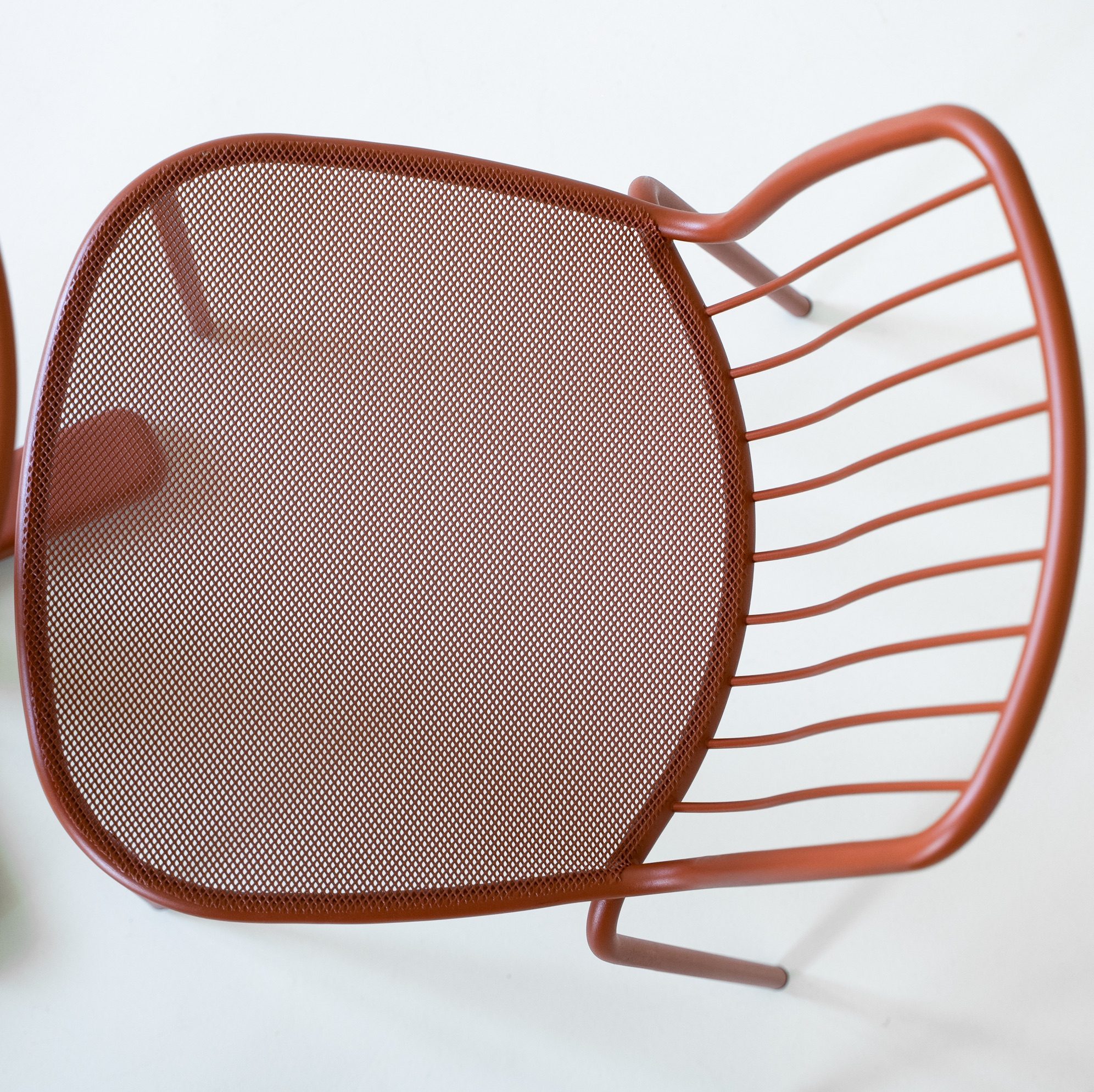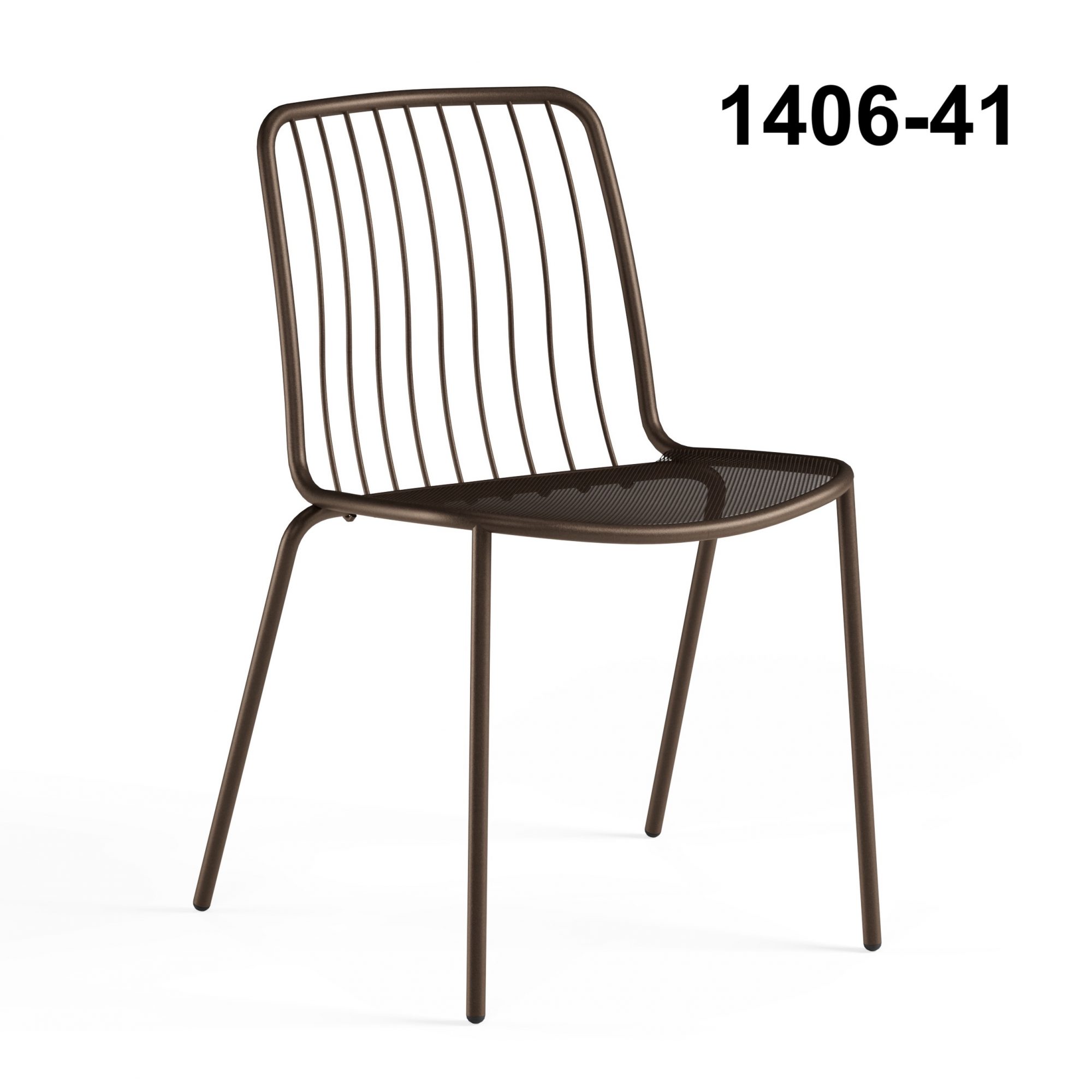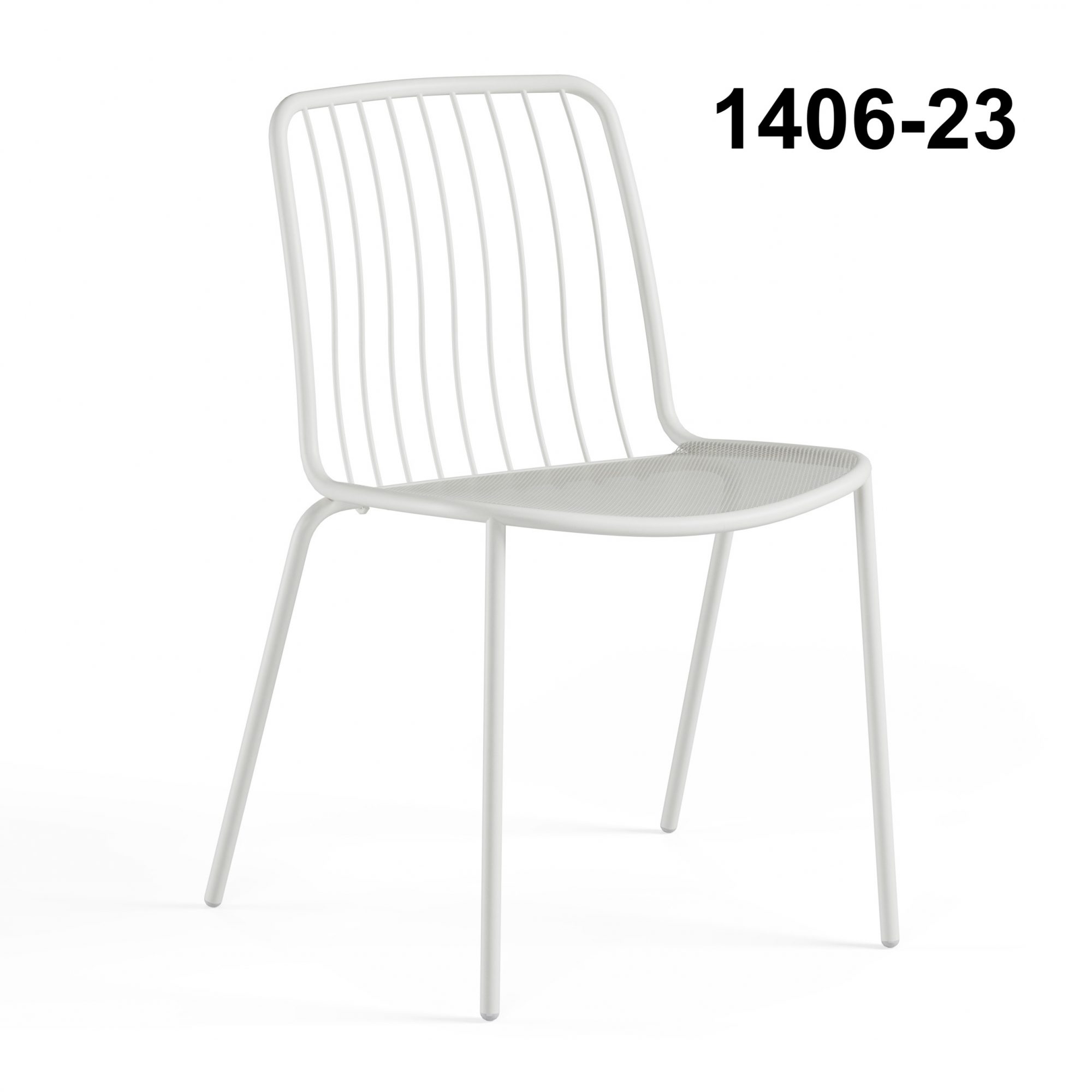 The Alisea 1406 steel chair is a design solution conceived for urban outdoor contract furniture. Inspired by the lightness of the wind, it combines functionality, durability, and aesthetic minimalism, making it ideal for bars, restaurants, outdoor seating areas, and public spaces. The steel mesh seat ensures breathability and comfort, while the backrest, made of metal rods, creates a light and dynamic visual effect. The design integrates two construction technologies - curved bars and steel mesh - ensuring structural strength and long-lasting durability even in high-traffic environments. A wide range of colors allows for versatile pairings with modern, industrial, or contemporary styles.