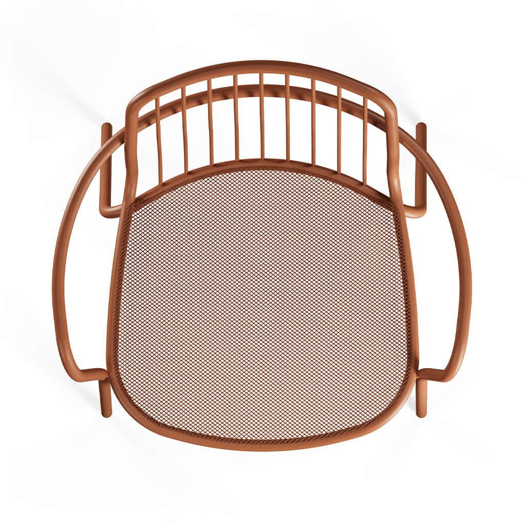 The Alisea steel armchair for outdoor use is a contract design solution engineered for urban furniture and high-traffic outdoor spaces. Ideal for bars, restaurants, patios, terraces, and public areas, it blends durability, functionality, and contemporary aesthetics. Inspired by the lightness of the wind, the Alisea armchair features a steel mesh seat that ensures breathability, comfort, and ease of maintenance - making it perfect for outdoor environments. The backrest, crafted from metal rods, provides a light and dynamic visual effect that enhances its surroundings. The design integrates two construction technologies - curved steel bars and steel mesh - guaranteeing structural solidity, durability, and weather resistance, even in high-use contract contexts. Available in a wide range of colors, the Alisea armchair easily adapts to modern, industrial, and contemporary styles, offering maximum design versatility for professional outdoor furnishing.