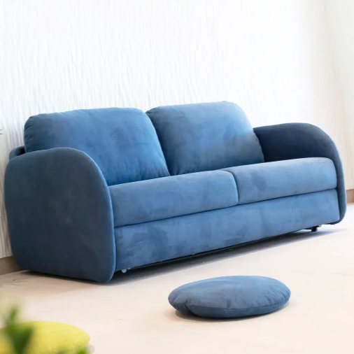 Fama Bopy Sofa Bed by Fama is a stylish and functional piece, designed with rounded, charming shapes and a low backrest, making it an eye-catching anywhere on your home. This sofa features an Italian-opening mechanism and a mattress made from foam and memory foam for exceptional comfort. Ideal for design-forward spaces, the Bopy also offers practicality by transforming into a comfortable and stylish convertible sofa bed.