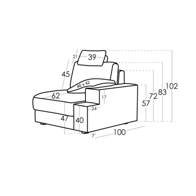 - Dimensions 265 x 100 x 83cm high plus headrest