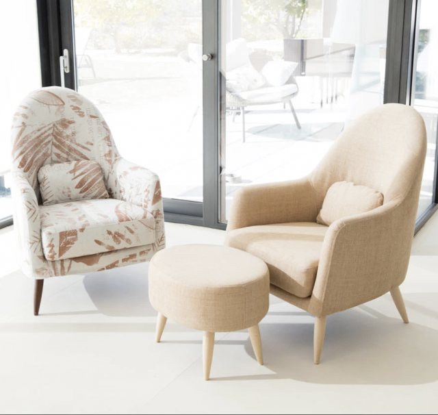 The Fama Miranda armchair is a modern armchair inspired by the furniture from the 50s. It has a high back and ergonomic details feature that will provide you with a comfort for relaxation. It has wood legs and rounded lines that harmonize with any decor. It also has an optional footstool available to complete your set.