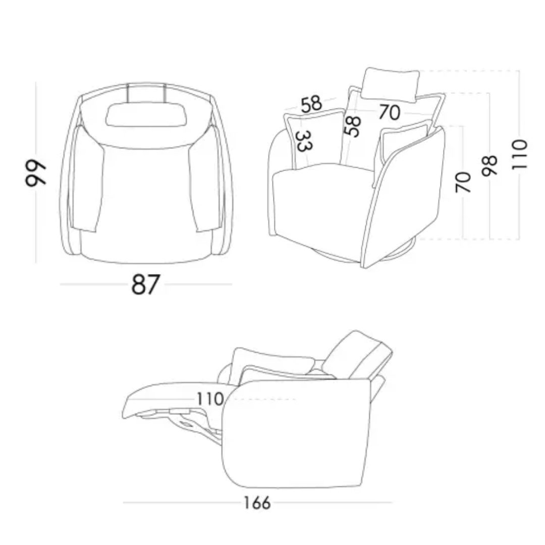 - Rocking base with electric reclining mechanism, controlled by remote control