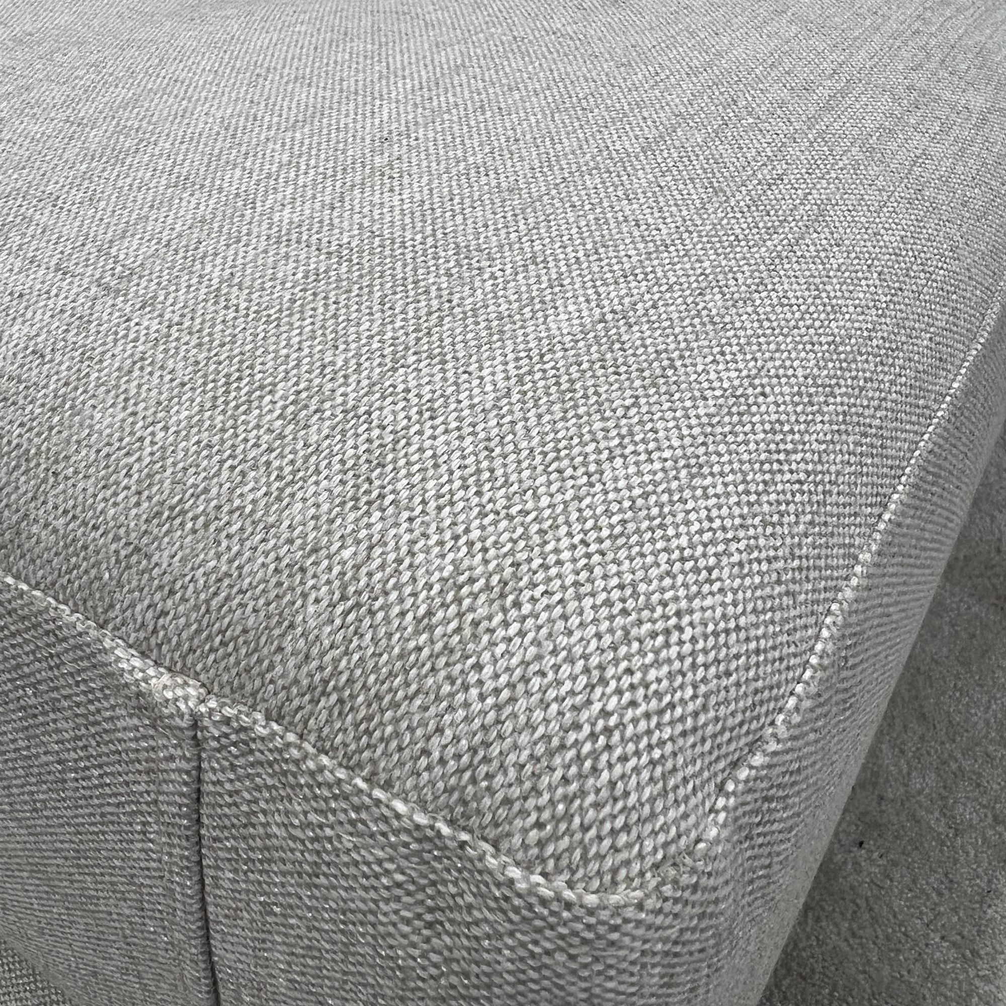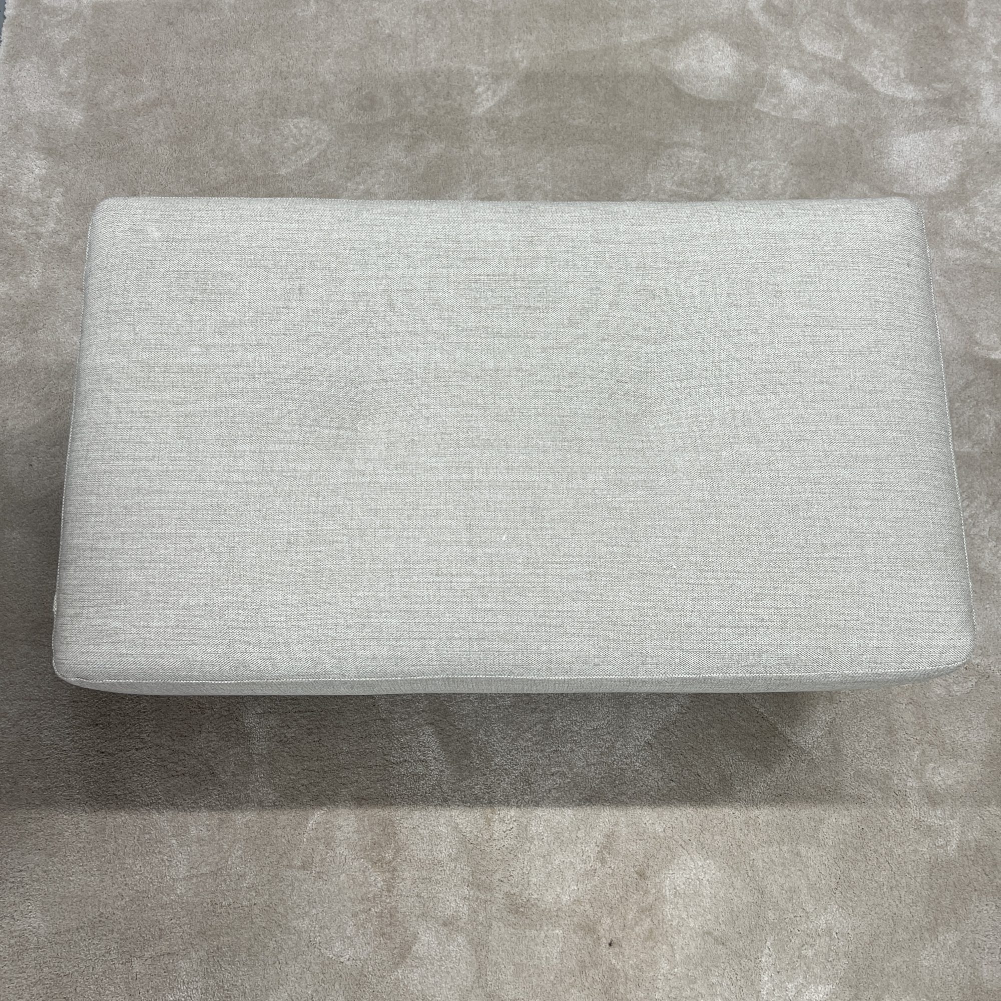 The Fama Opera foostool features a seperate box cushion with stitch button detailing in the top and is held in place on the upholstered base with velcro.