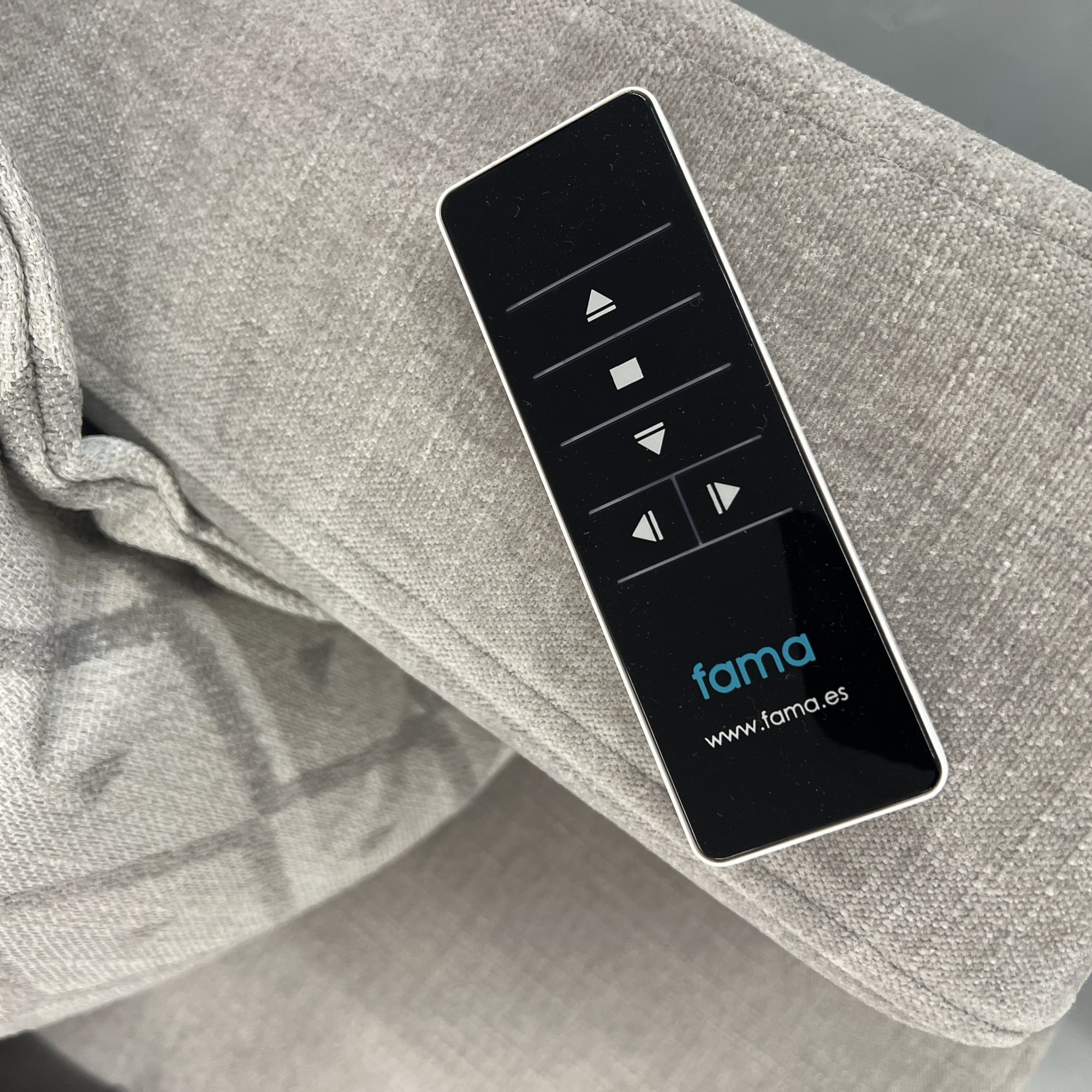 The Fama Paradis sofa features a manually adjustable ratchet headrest and power adjustable seat depth, with only a press of the remote control the seat depth of the sofa seats can be changed from 53cm all the way out to 114cm, creating a giant chaise. Each seat is seperatly controlled so each person can set their prefered seat depth.