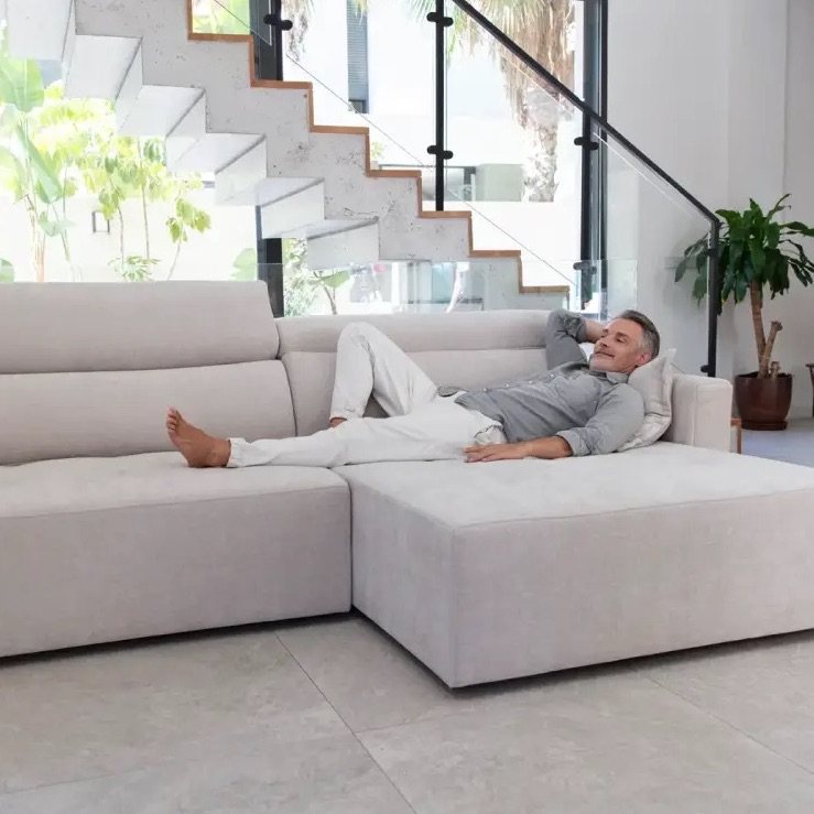Fama Paradis Duet modular sofa collection features a fully motorised pull out seat, this extends the seating depth of the sofa by 60cm, turning it into a luxurious extra deep sofa allowing you to stretch out and relay in comfort. Each seat is independently controlled, so allowing each person to set the seat depth to suit them.