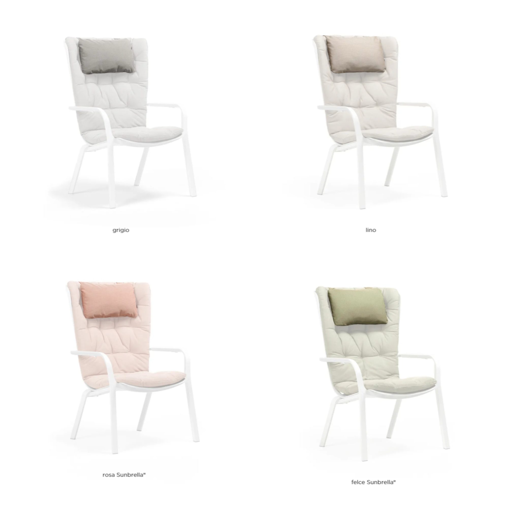 The Nardi Folio headrest offers extra head and neck support and is held in place with velcro straps looped through the back of the Folio armchair.