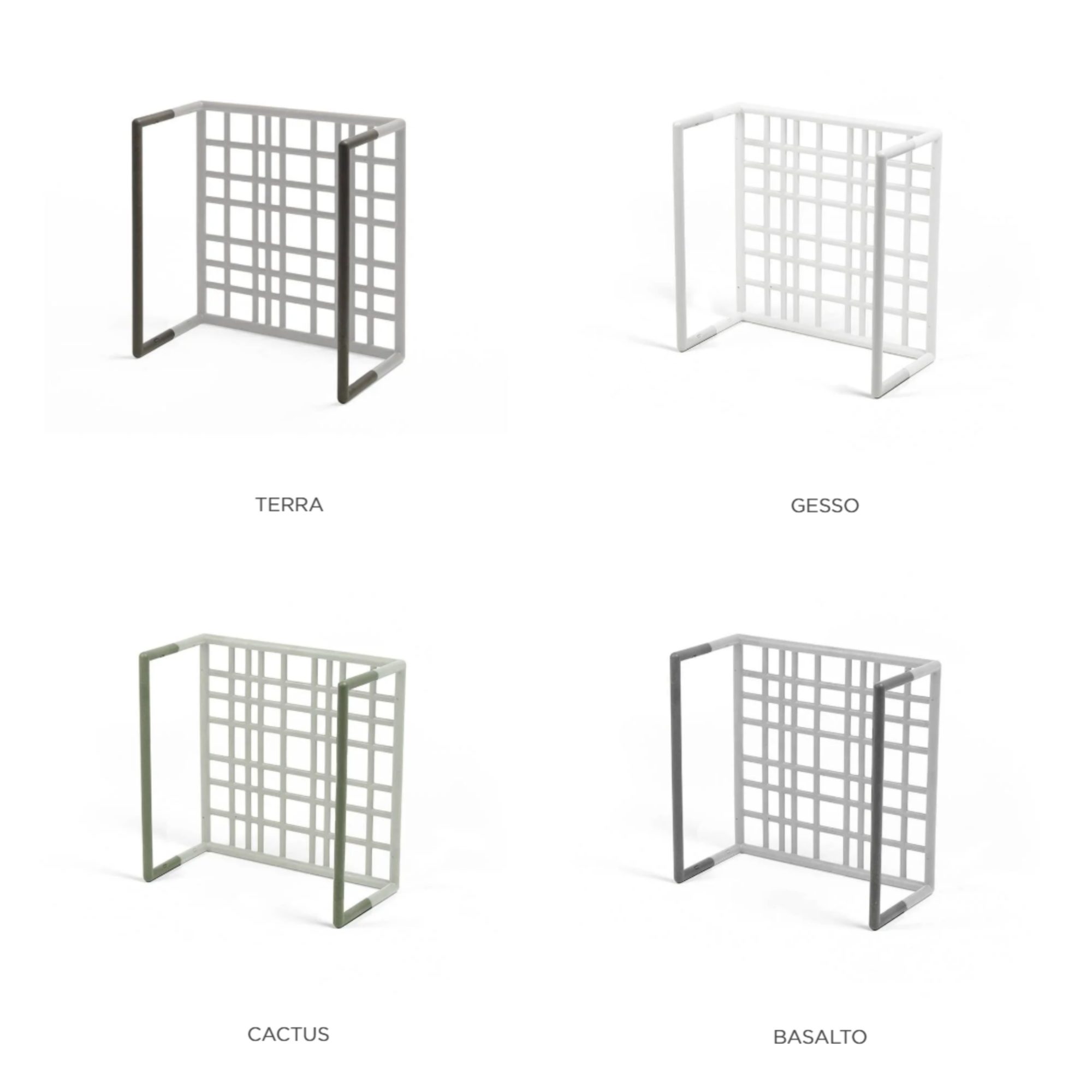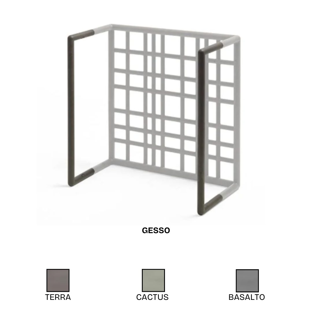 The Nardi Sipario chiusura is a modular partition wall system for outdoor use made of regenerated plastic with a self-watering planter. Featuring an asymmetrical mesh design, the modules allow you to create linear, split and curved layouts.