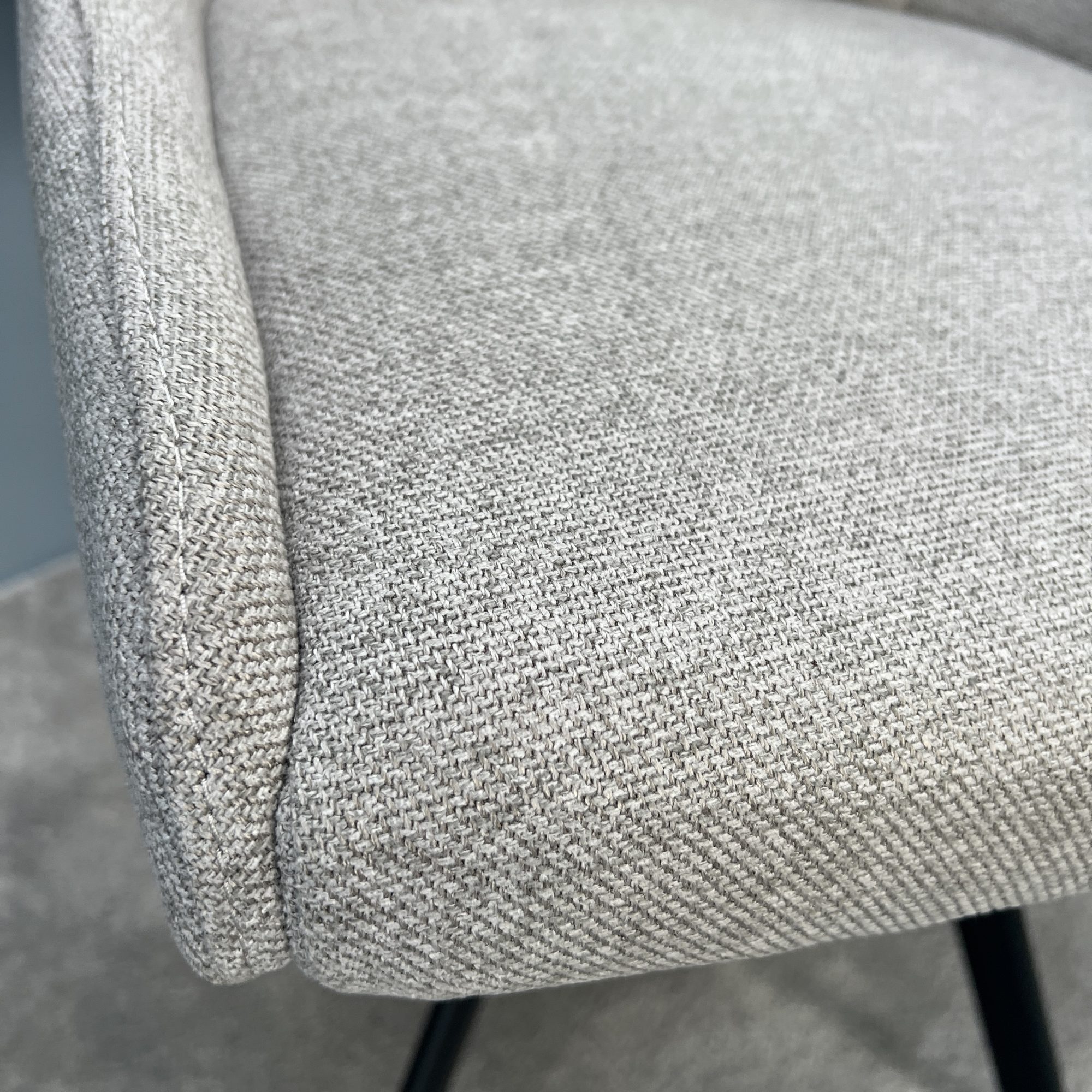 The Malpas dining chairs feature a matt black metal splayed base with a return swivel movement on it and they are covered in a lovely light grey textured fabric.